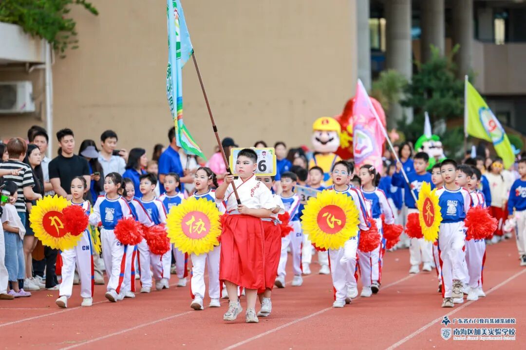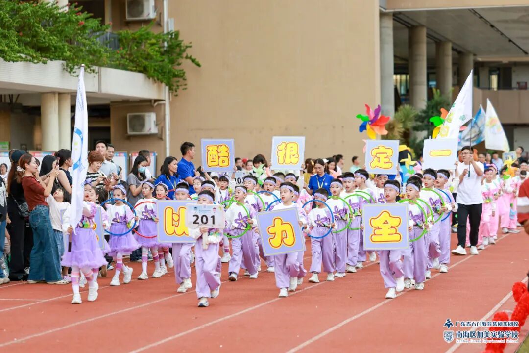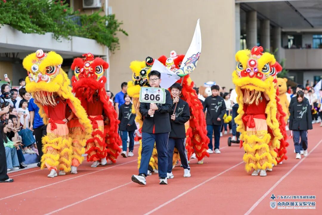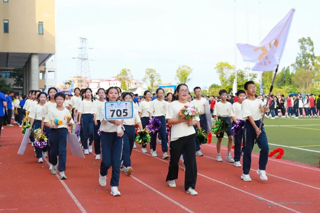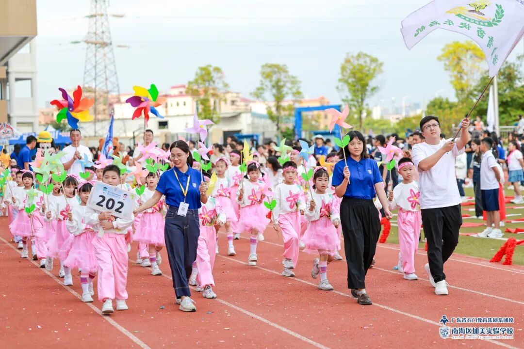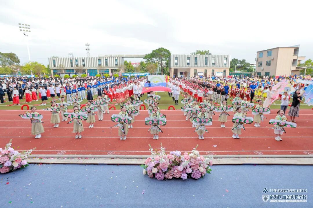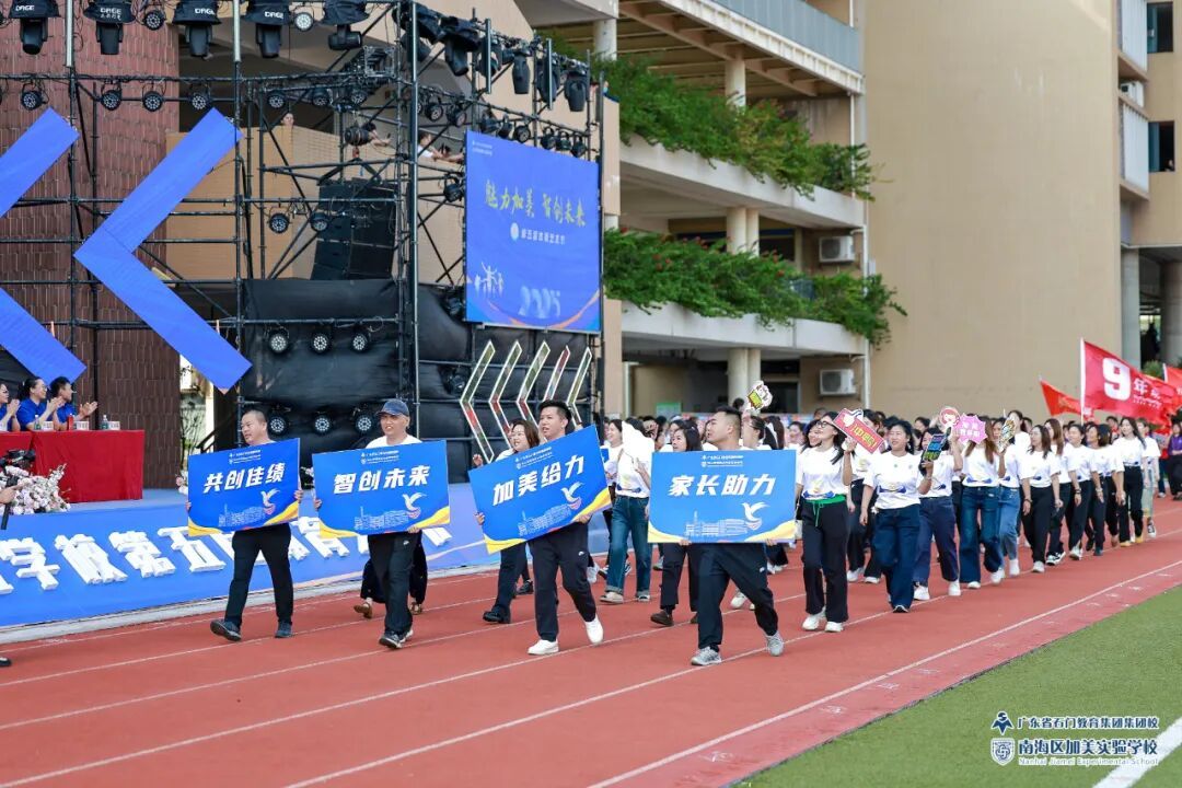鲜花方阵笑脸如花,校彩旗队意气风发,教师与裁判方阵沉稳庄重,家长方阵亲切温暖。他们的入场,展现了加美校园多元共融的教育生态。