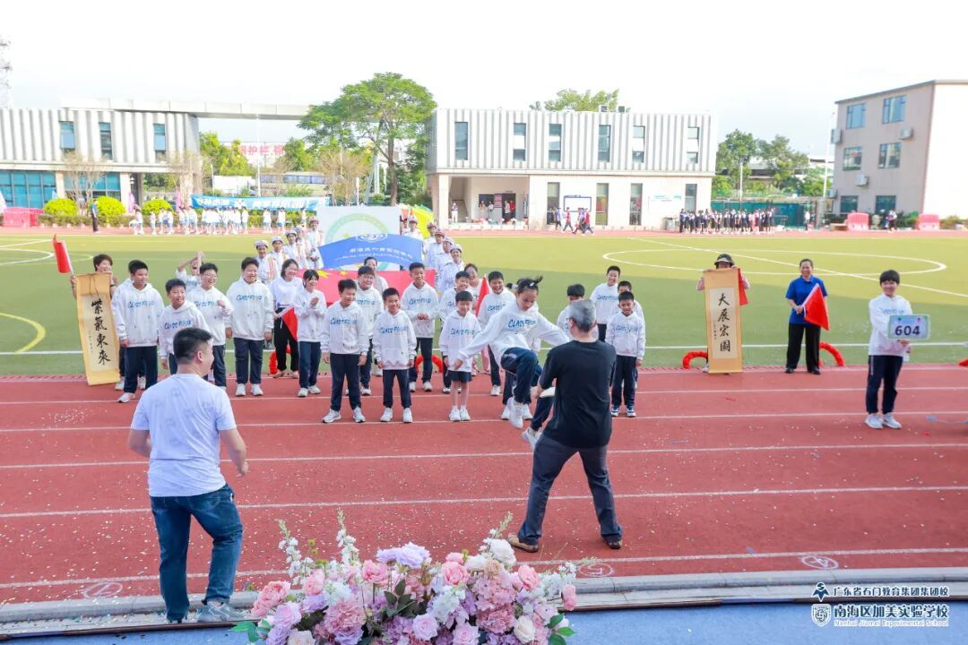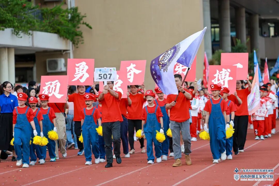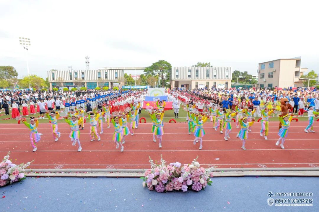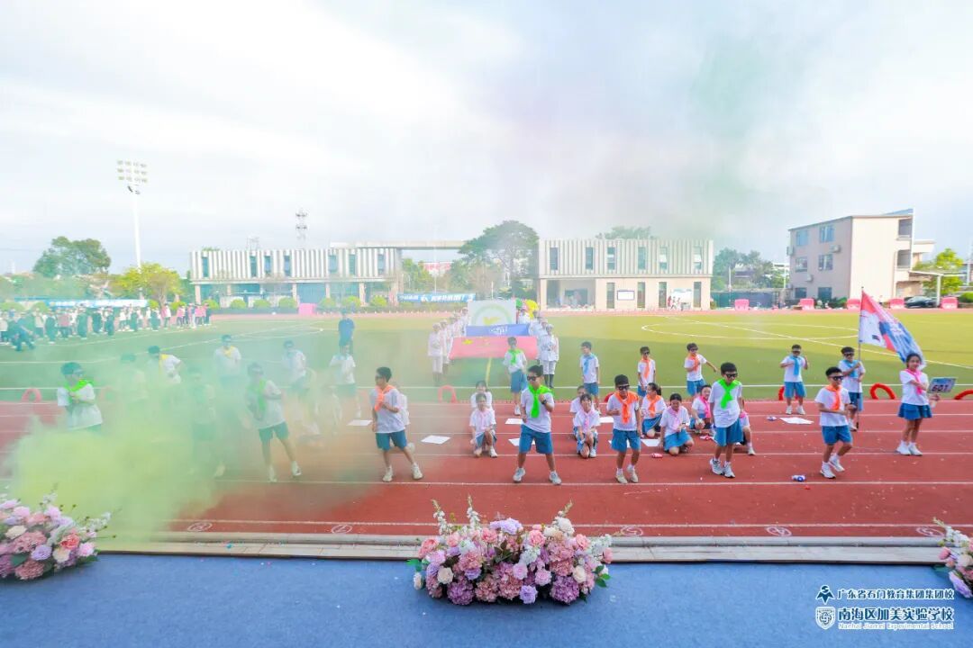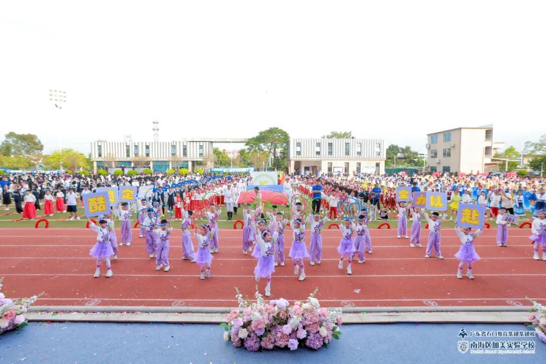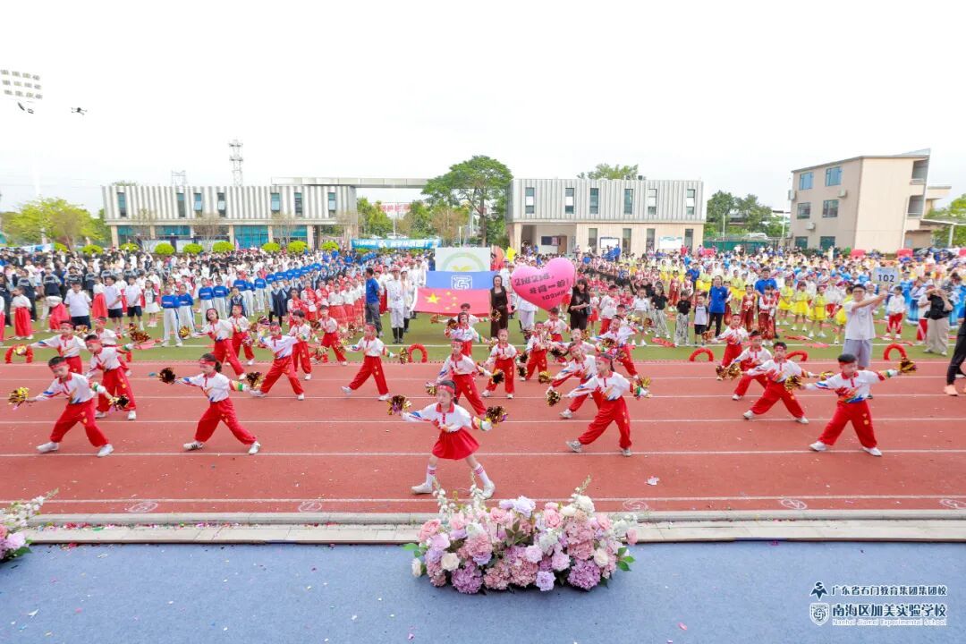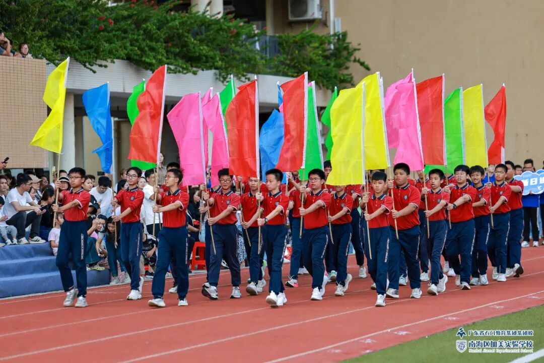 鲜花方阵笑脸如花,校彩旗队意气风发,教师与裁判方阵沉稳庄重,家长方阵亲切温暖。他们的入场,展现了加美校园多元共融的教育生态。
