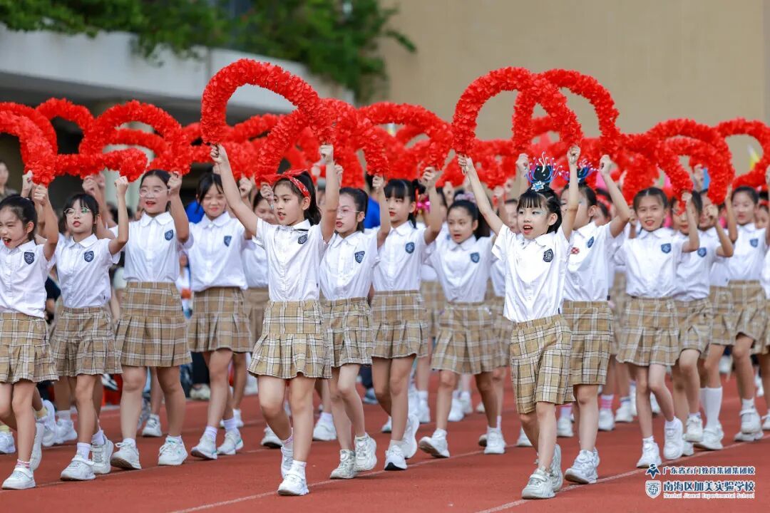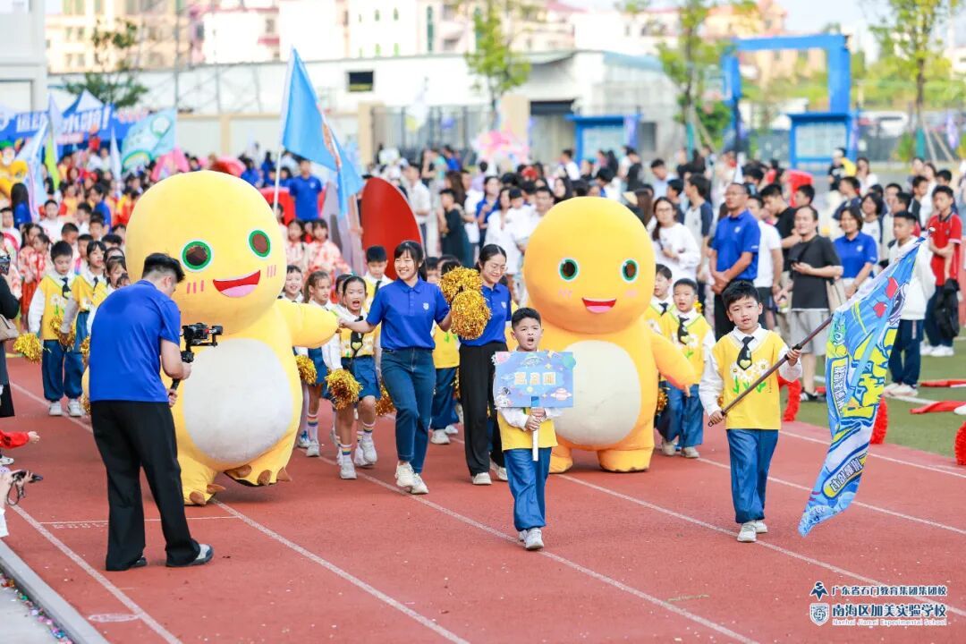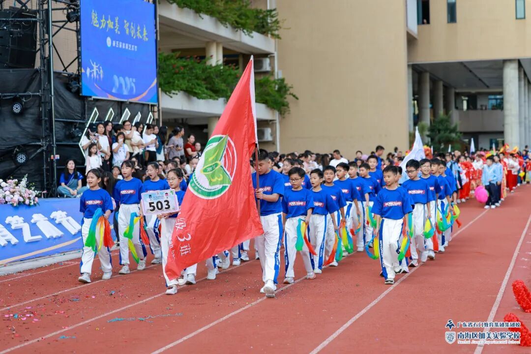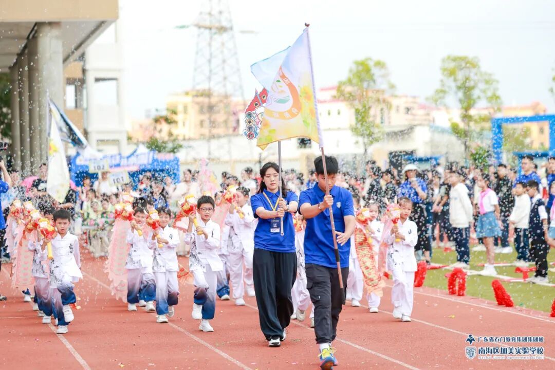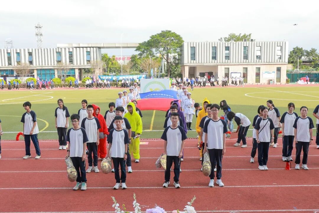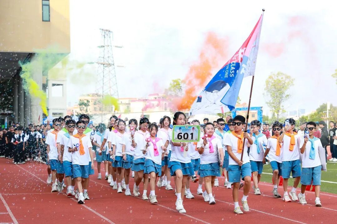 鲜花方阵笑脸如花,校彩旗队意气风发,教师与裁判方阵沉稳庄重,家长方阵亲切温暖。他们的入场,展现了加美校园多元共融的教育生态。