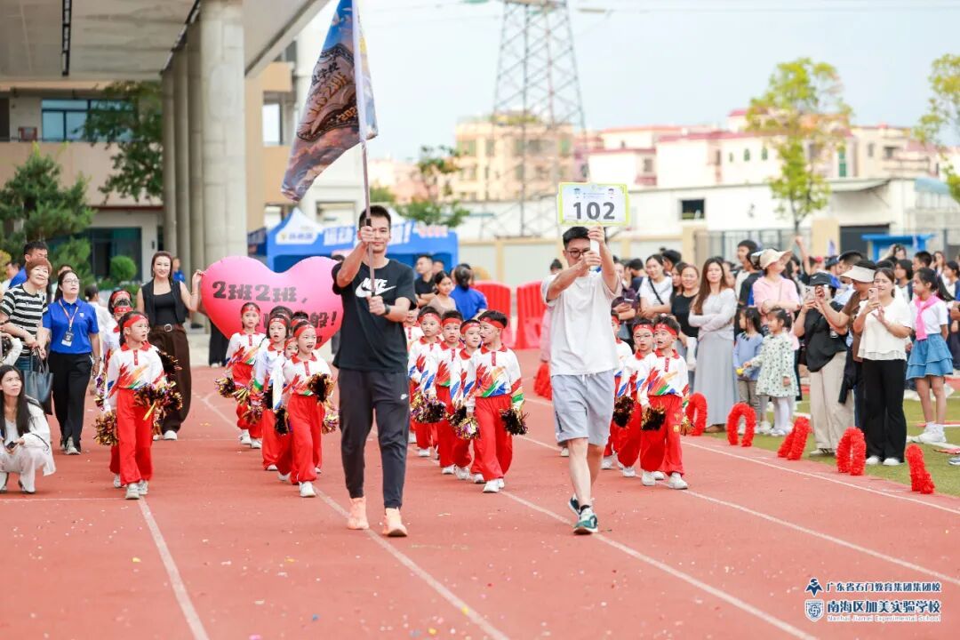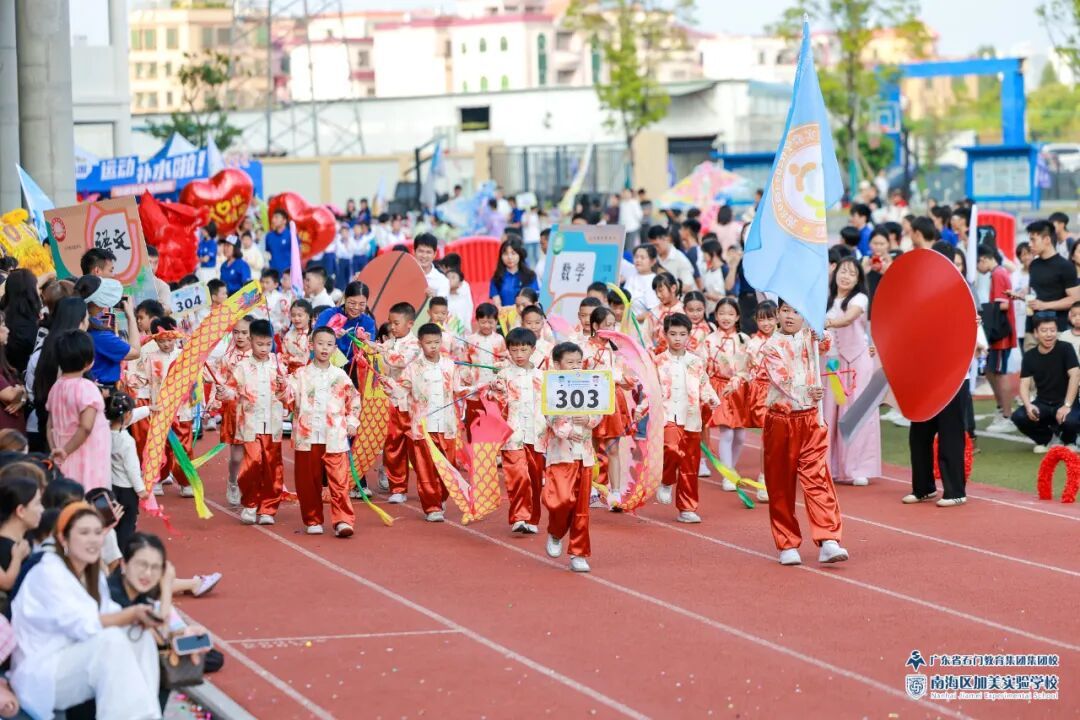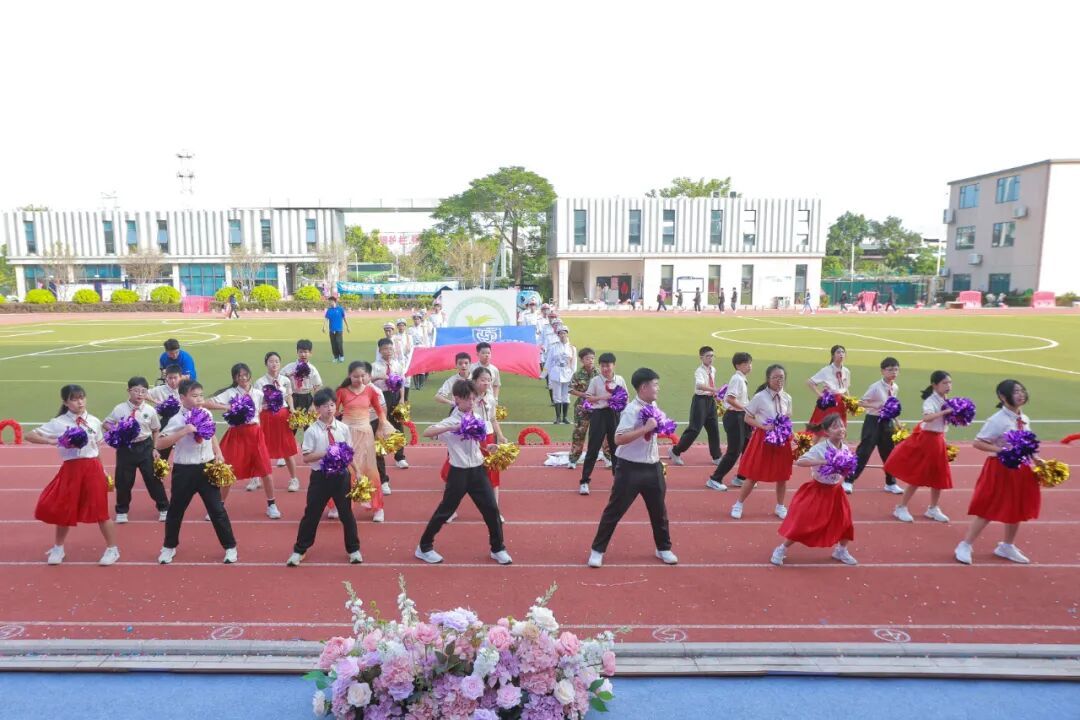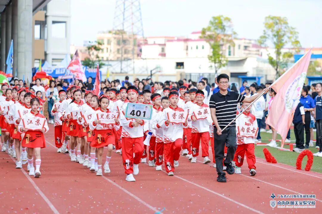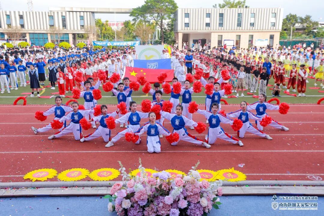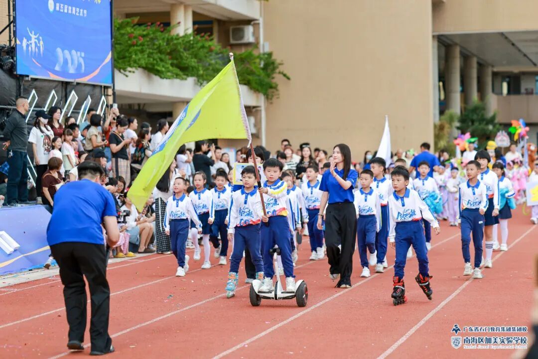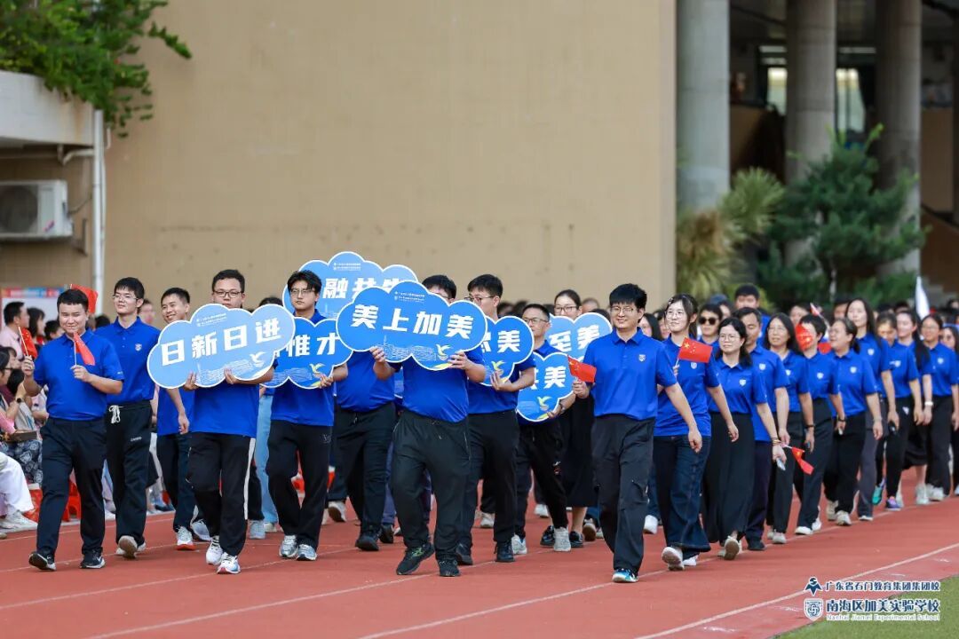 鲜花方阵笑脸如花,校彩旗队意气风发,教师与裁判方阵沉稳庄重,家长方阵亲切温暖。他们的入场,展现了加美校园多元共融的教育生态。