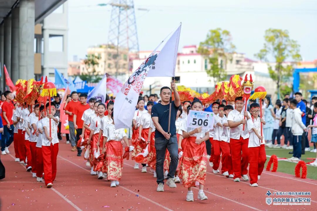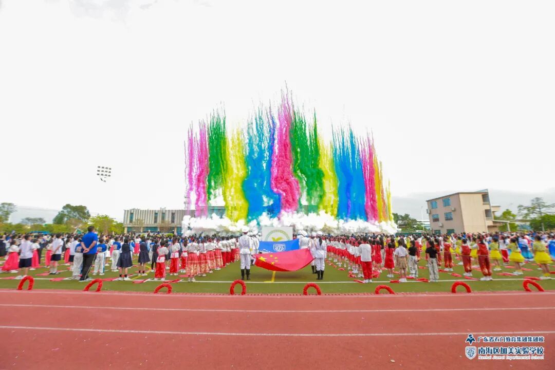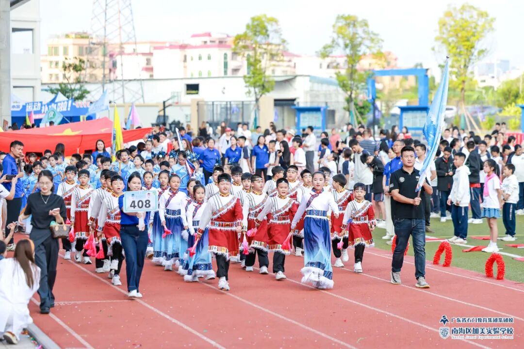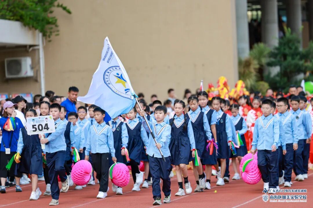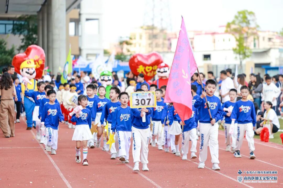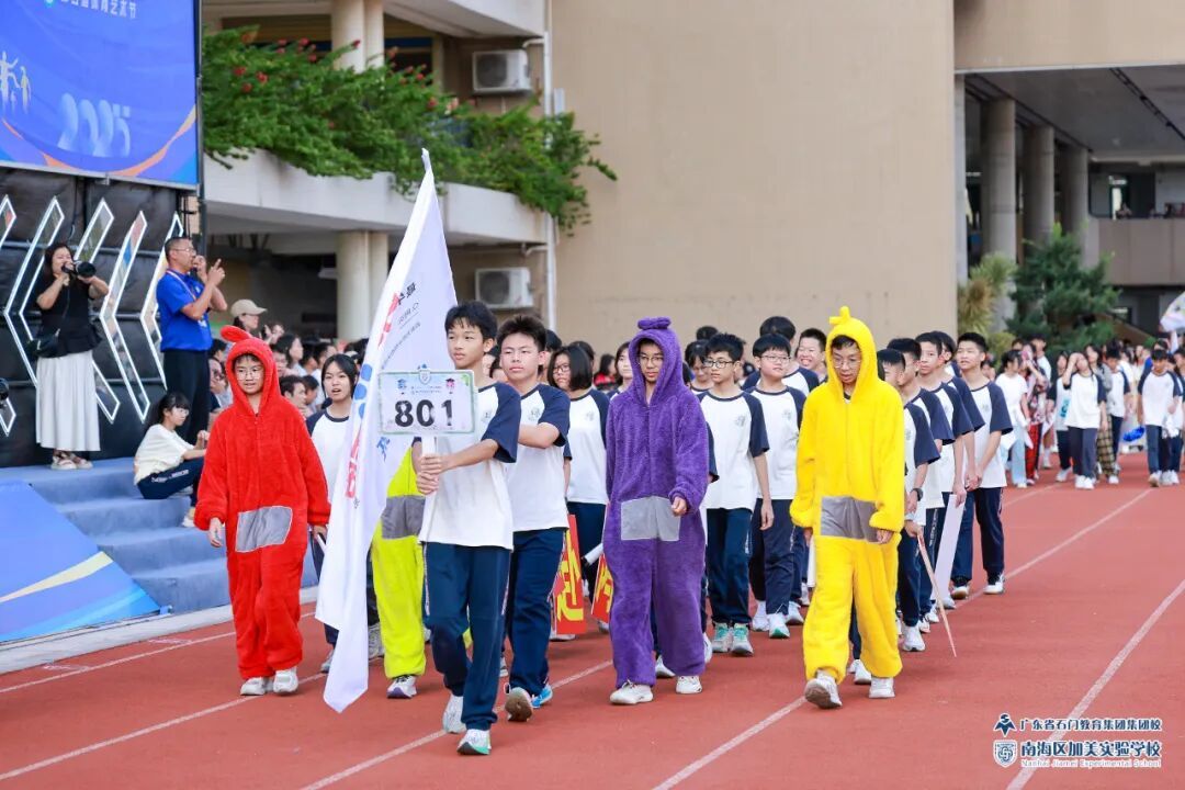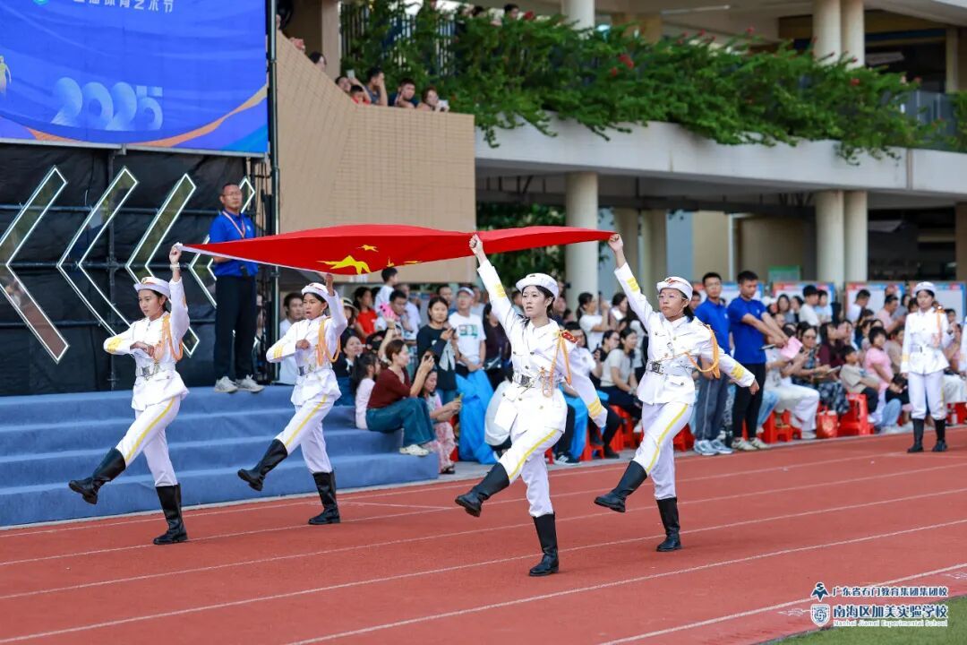 鲜花方阵笑脸如花,校彩旗队意气风发,教师与裁判方阵沉稳庄重,家长方阵亲切温暖。他们的入场,展现了加美校园多元共融的教育生态。