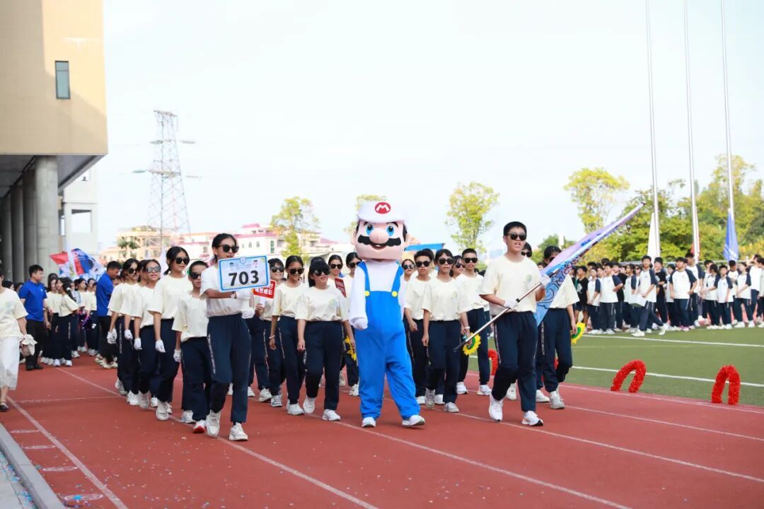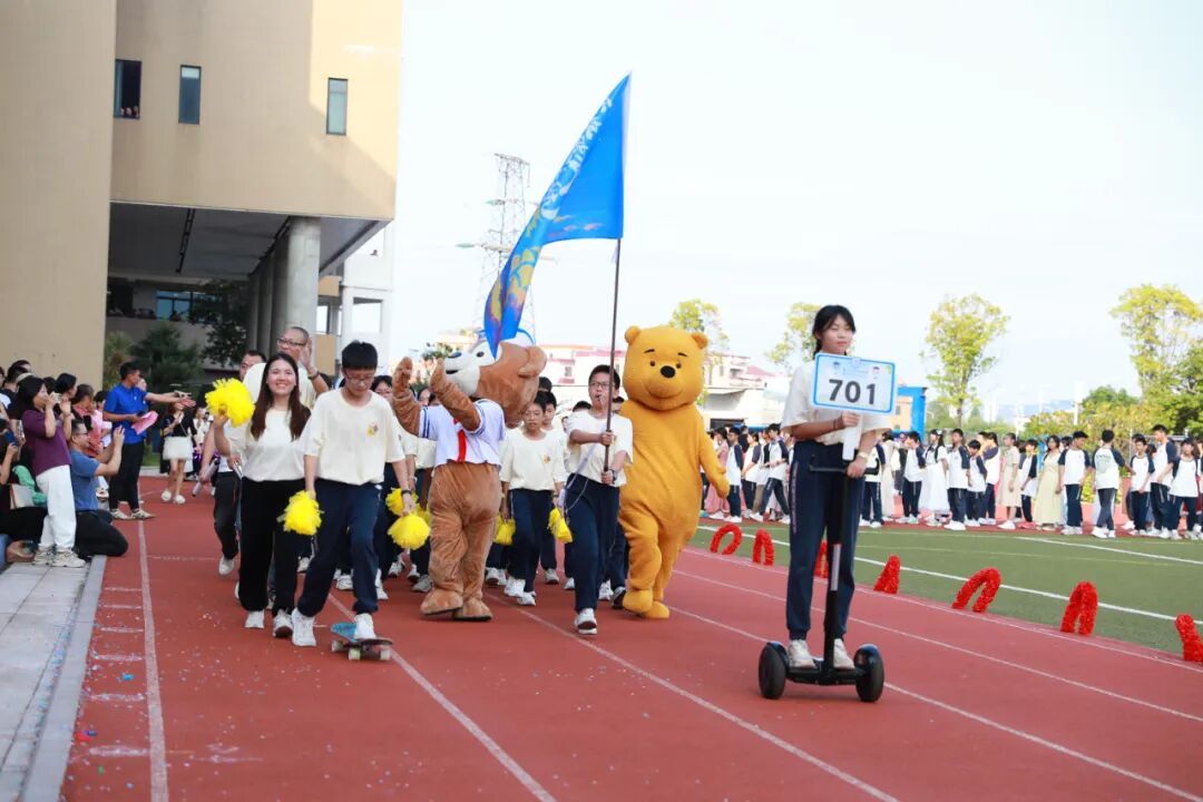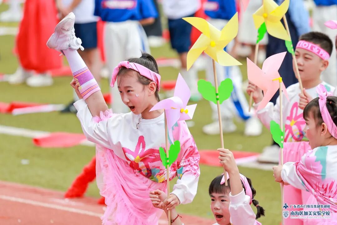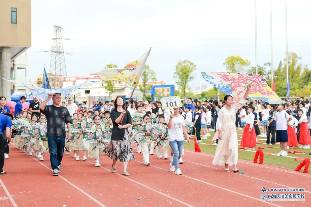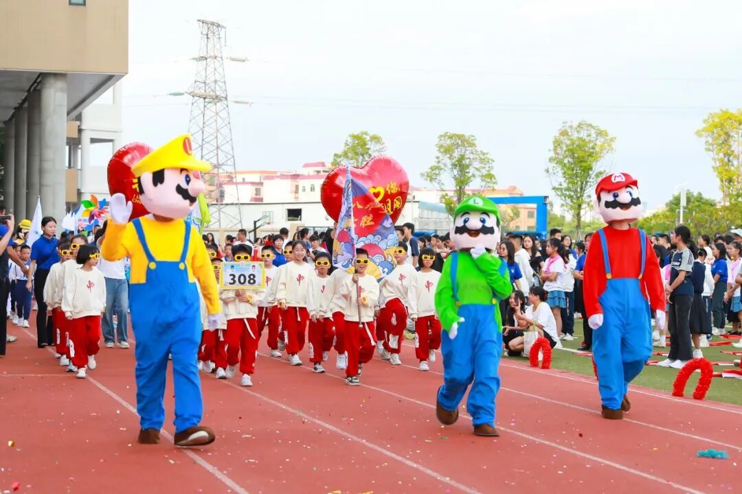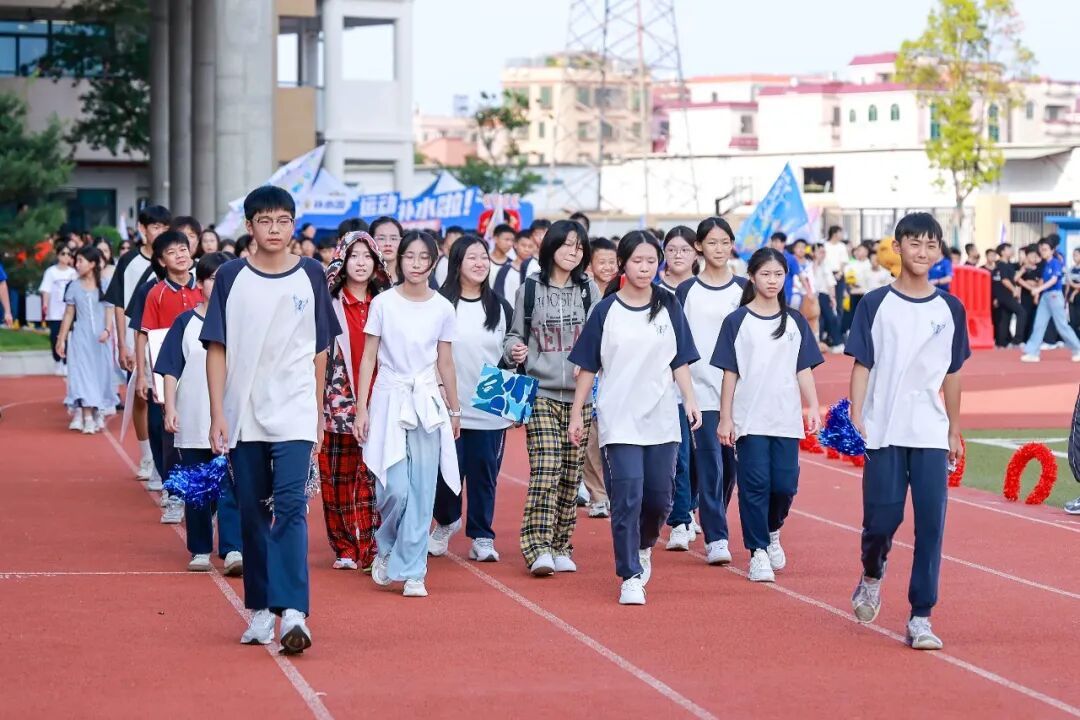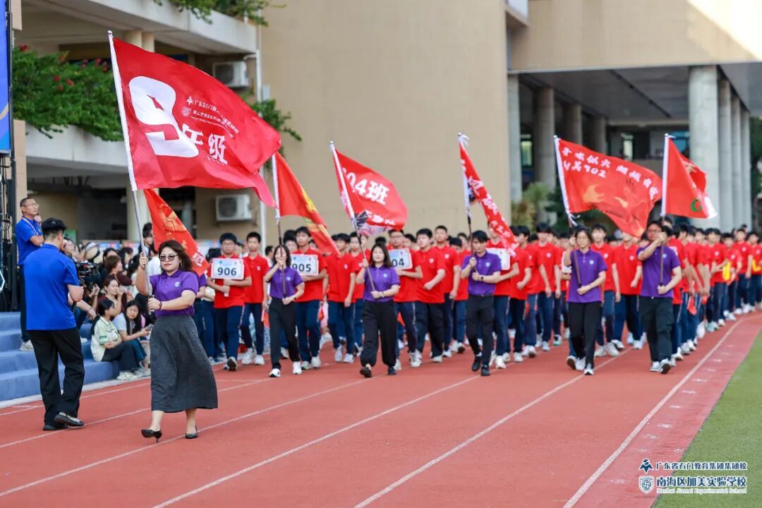 鲜花方阵笑脸如花,校彩旗队意气风发,教师与裁判方阵沉稳庄重,家长方阵亲切温暖。他们的入场,展现了加美校园多元共融的教育生态。