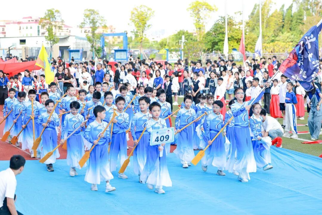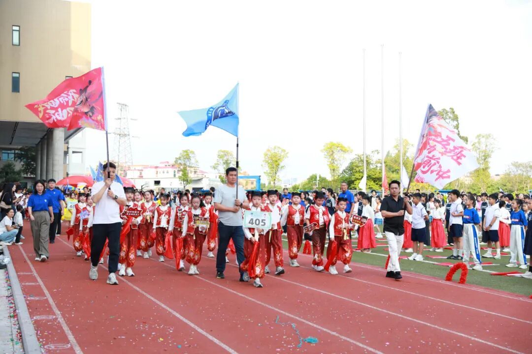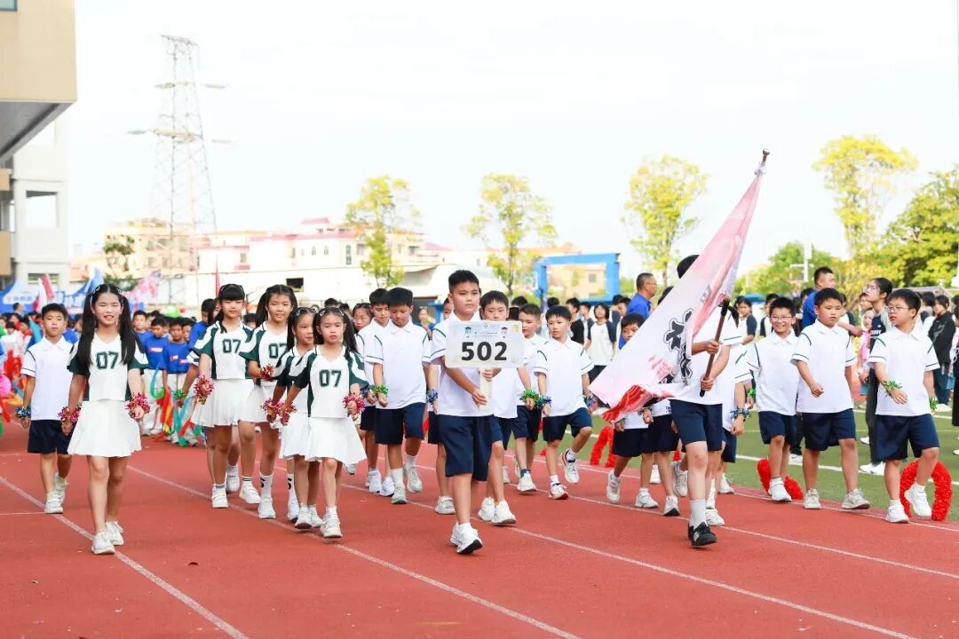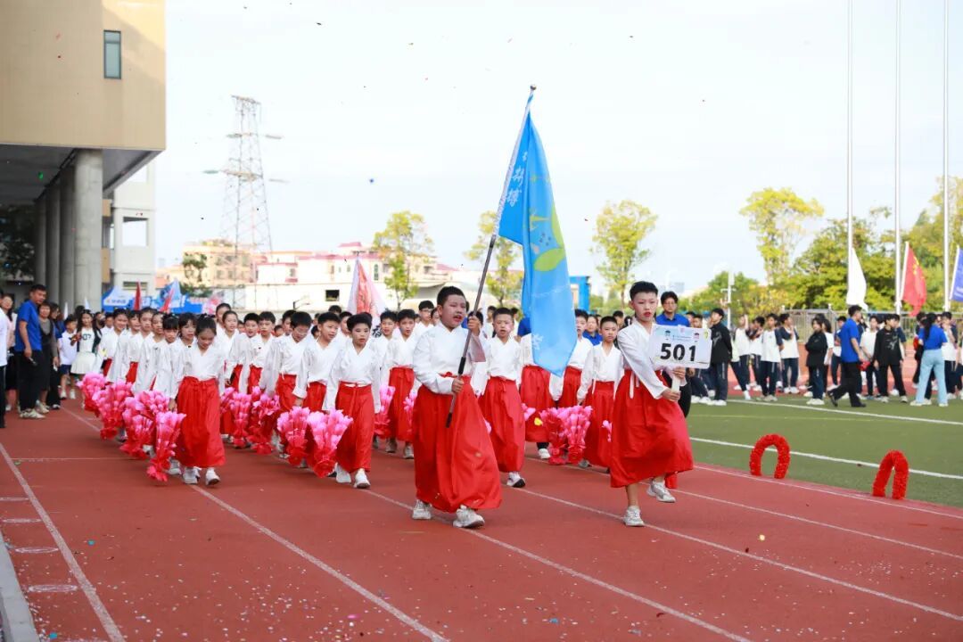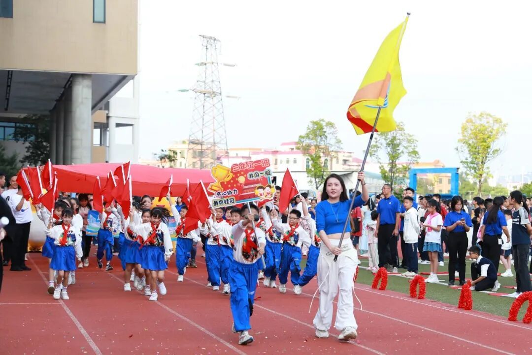 萌新亮相,以稚拙之步启征程。二年级的小同学们带着些许羞涩与更多的好奇登场。虽然步伐尚显稚拙,但他们那认真的神情、卖力的小跑,赢得了全场最热烈的掌声。
