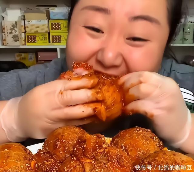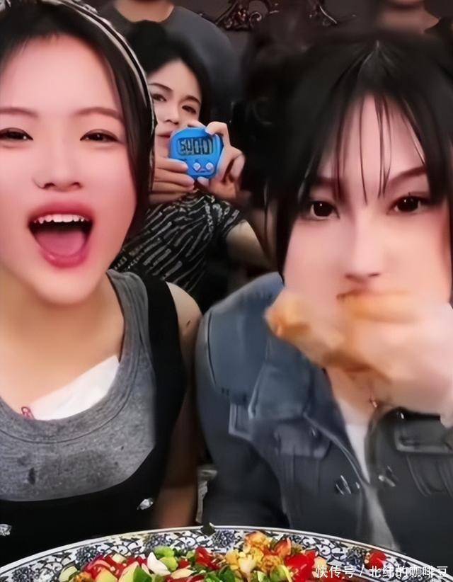 行业竞争加剧后,单纯“吃得香”难吸流量,她转向大胃王路线:半小时吞50个抄手、一顿吃1000根串串,甚至几分钟吃完10斤小炒泡馍;为造话题直播生嚼红辣椒,嘴唇红肿仍说“不够辣”。